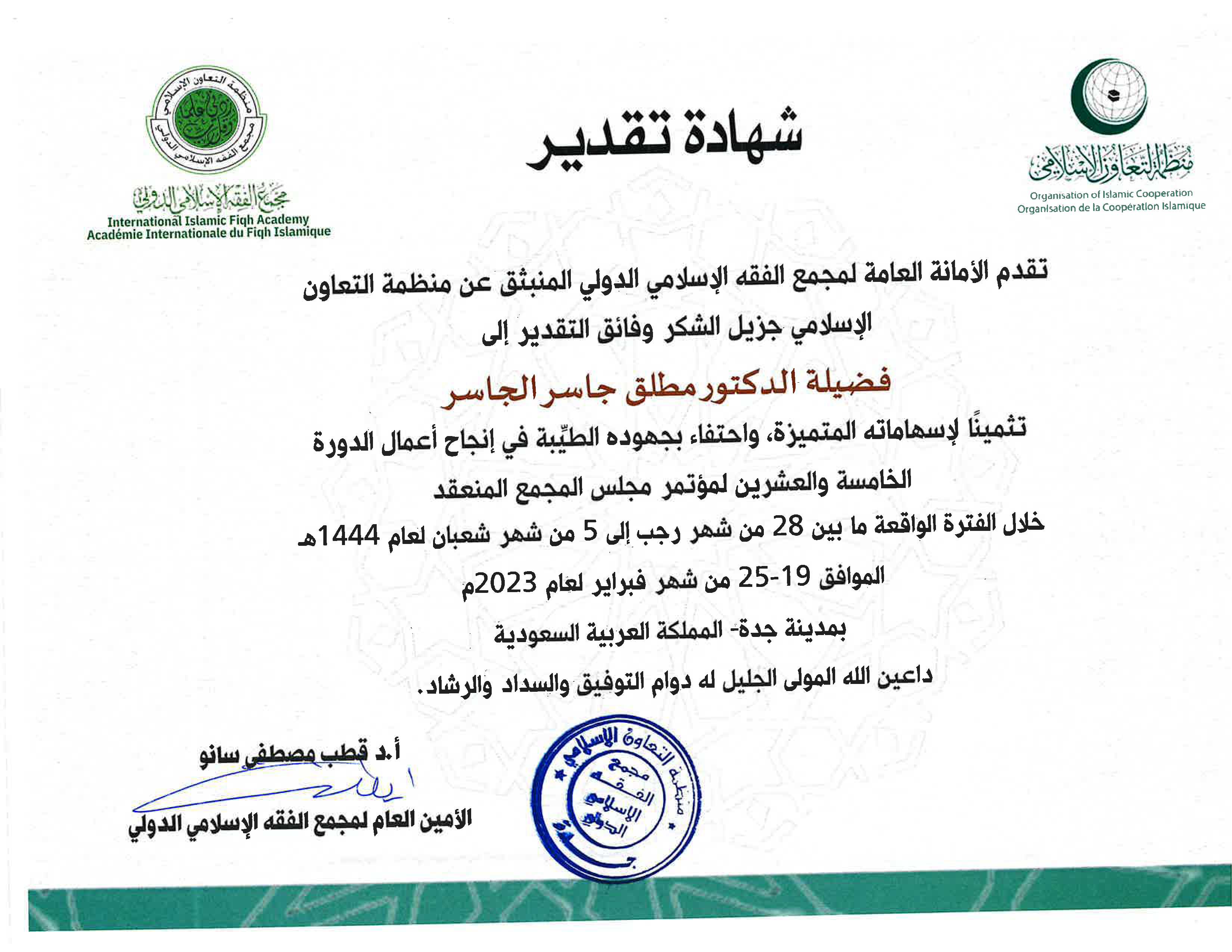 - Obtained PhD in Islamic economics, a thesis entitled: “The Theory of Changing Fatwas and Its Applications in the Jurisprudence of Islamic Banking”, from Yarmouk University – Jordan (Department of Economics and Islamic Banks), 2014.