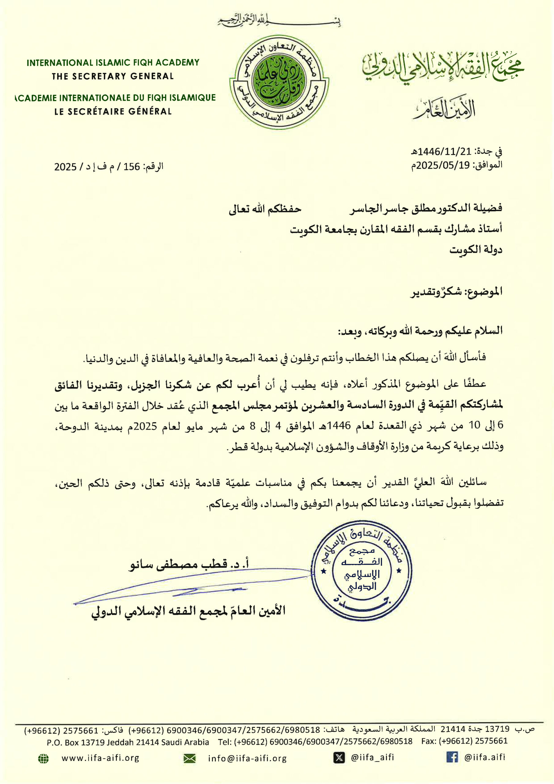 Then a faculty member in the Department of Comparative Islamic Jurisprudence and Islamic Law (Sharia) Politics at the Faculty of Islamic Law (Sharia) and Islamic Studies at Kuwait University