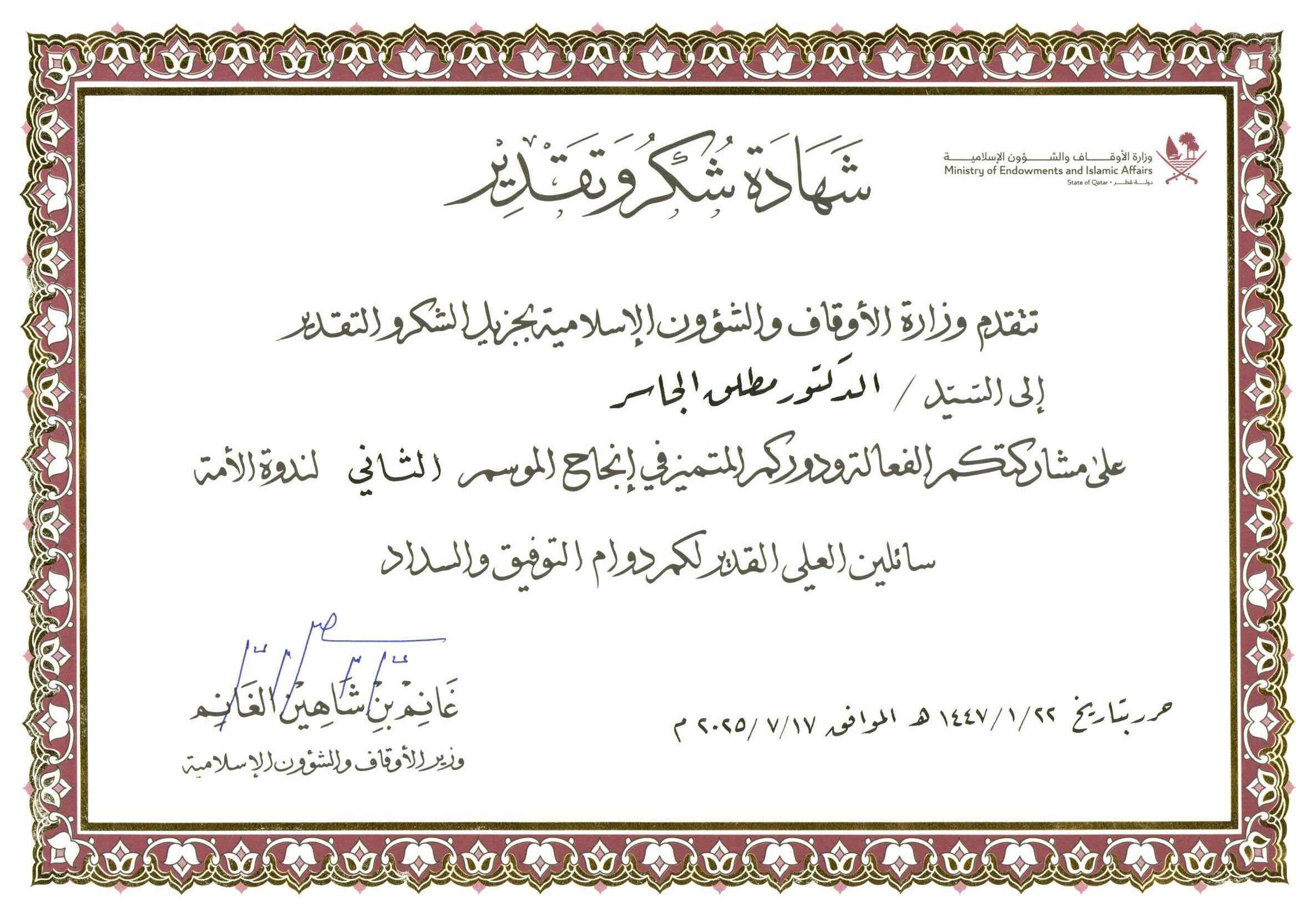 4. وحصل على شهادة المراقب الشرعي المعتمد، من هيئة المحاسبة والمراجعة للمؤسسات المالية الإسلامية ( AAOIFI )، في مملكة البحرين.